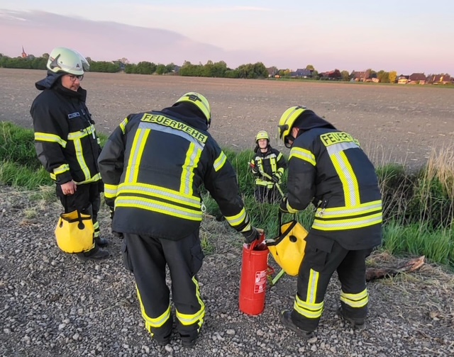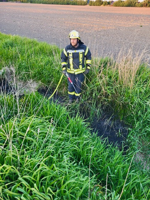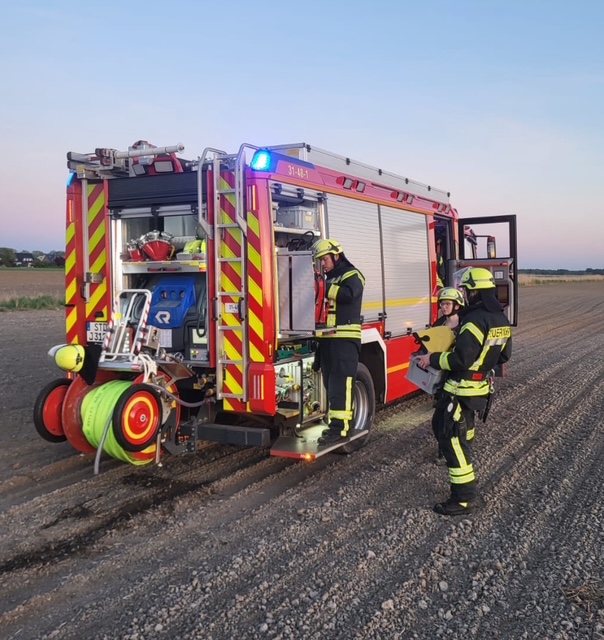 Eine Rauchentwicklung auf einer landwirtschaftliche Fläche wurde über den Notruf 112 gemeldet. Erste Löschversuche von Anwohnern führten zum Erfolg, wir bewässerten die Brandstellen und rückten ein. (REv)
